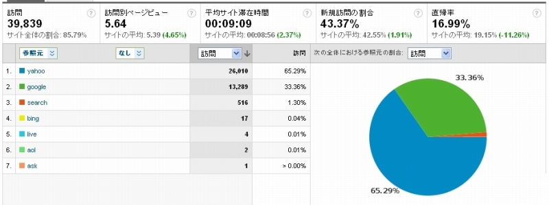 基本的にYahooよりGoogle経由のアクセスの方が多いので2倍差でYahooからのアクセスの方が多いという