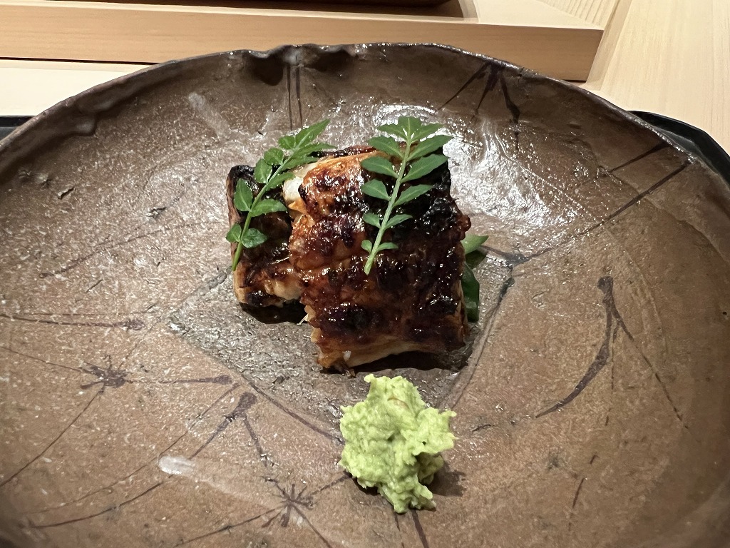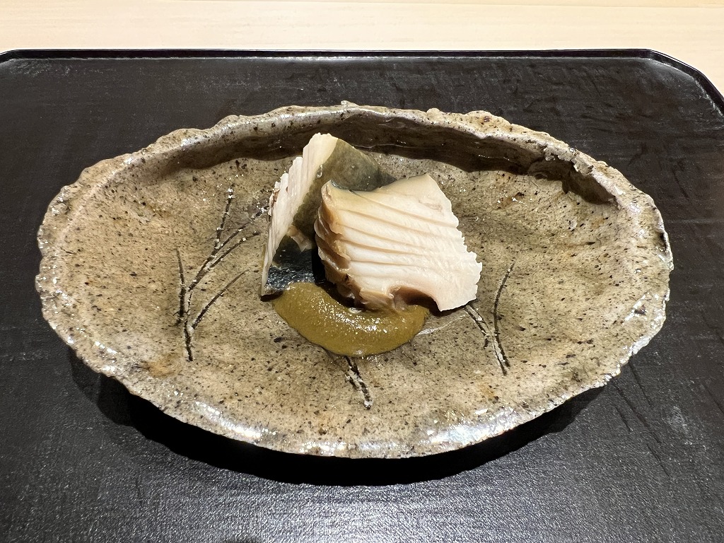 ややネットリとした身に藁焼きの香ばしさが口の中に広がり、塩とからしが良いアクセントなってて旨い。