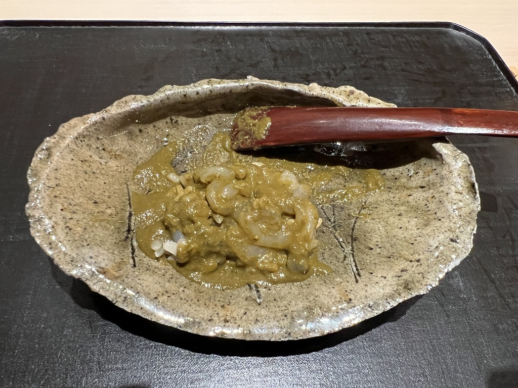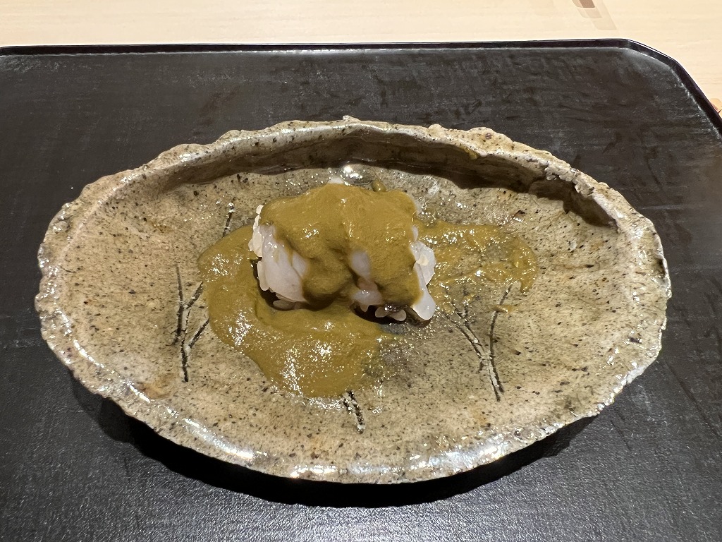 ・アワビの肝ソースに白エビ(こぶじめ)&シャリ玉