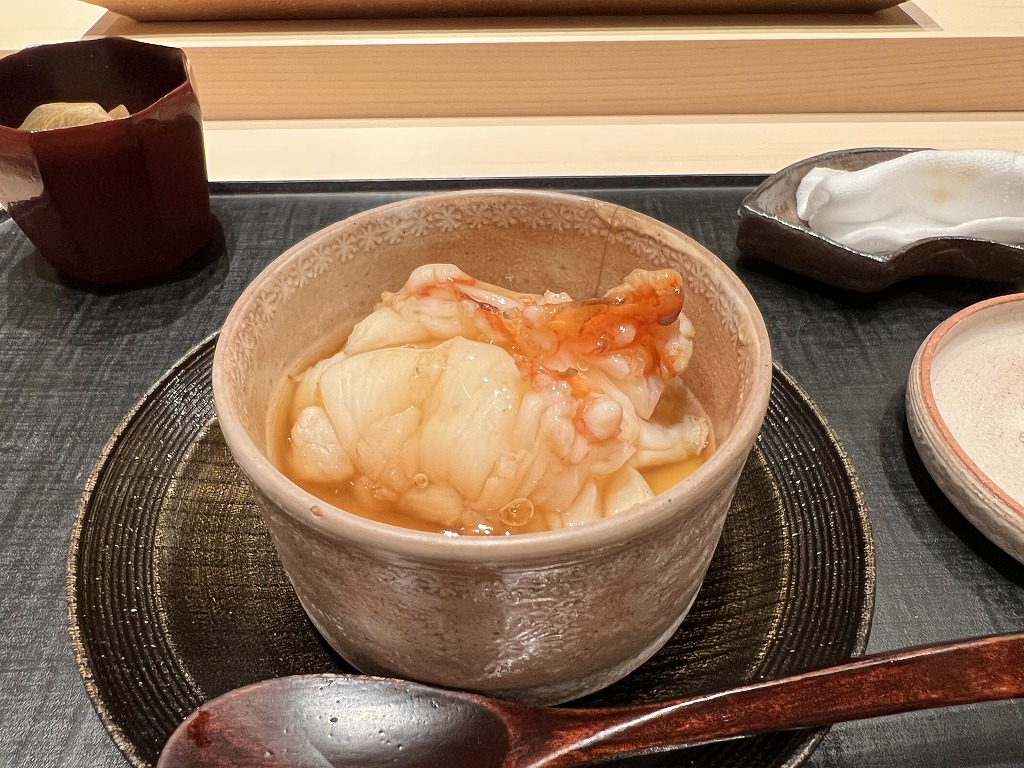 この茶碗蒸しもヤバかった。肉厚の海老と茶碗蒸しが最高にマッチしてて肉厚ブリブリの海老と海老の卵と茶碗蒸しが三位一体になって絶品の茶碗蒸し。